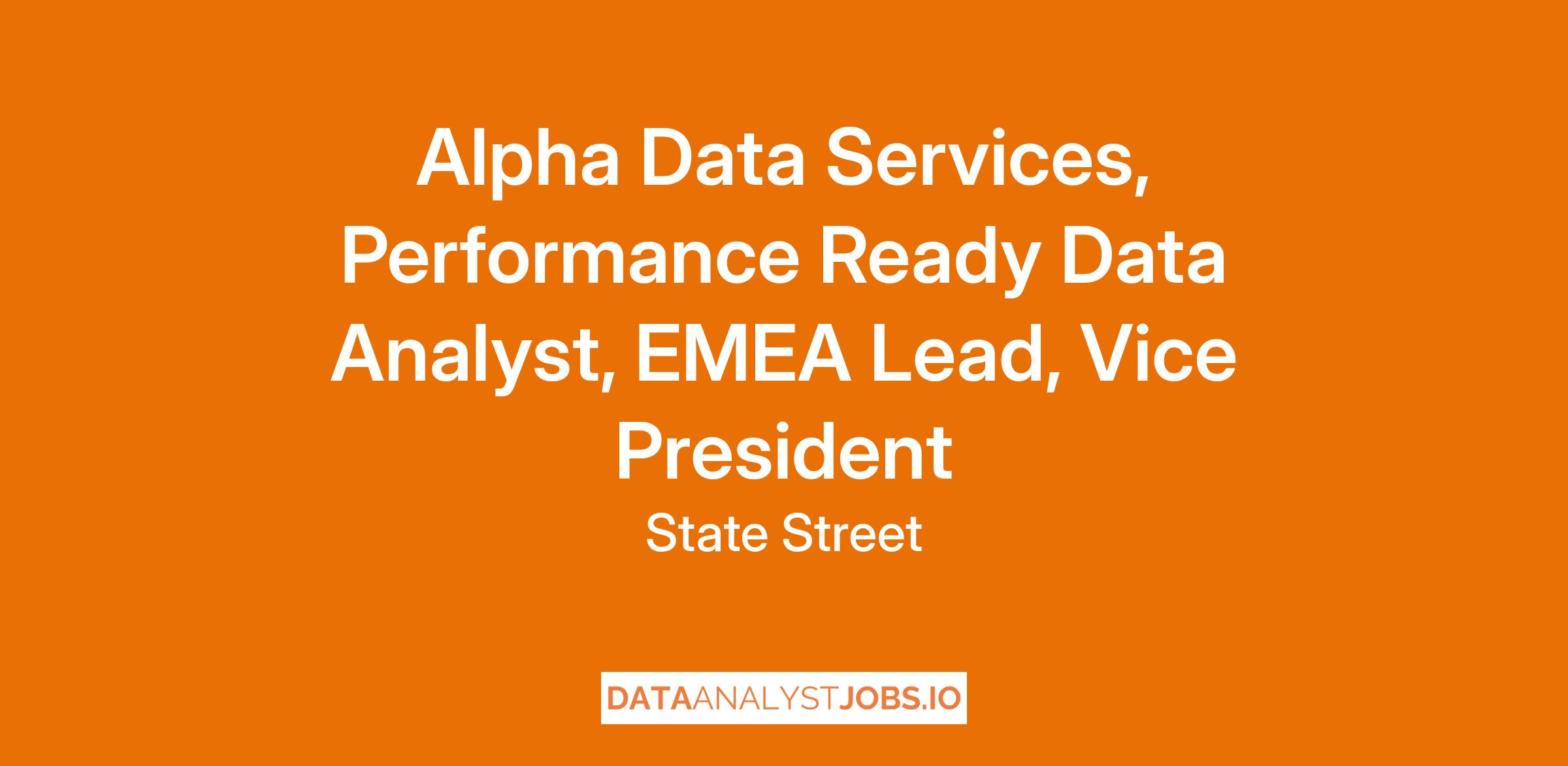 State Street Alpha Data Service (ADS) is the data-as-a-service provider that is the back bone of the Alpha front to back strategy. Combining both technology and service provision to deliver significant data management value to our clients. We're looking for a candidate to lead our ADS, Analytics team.