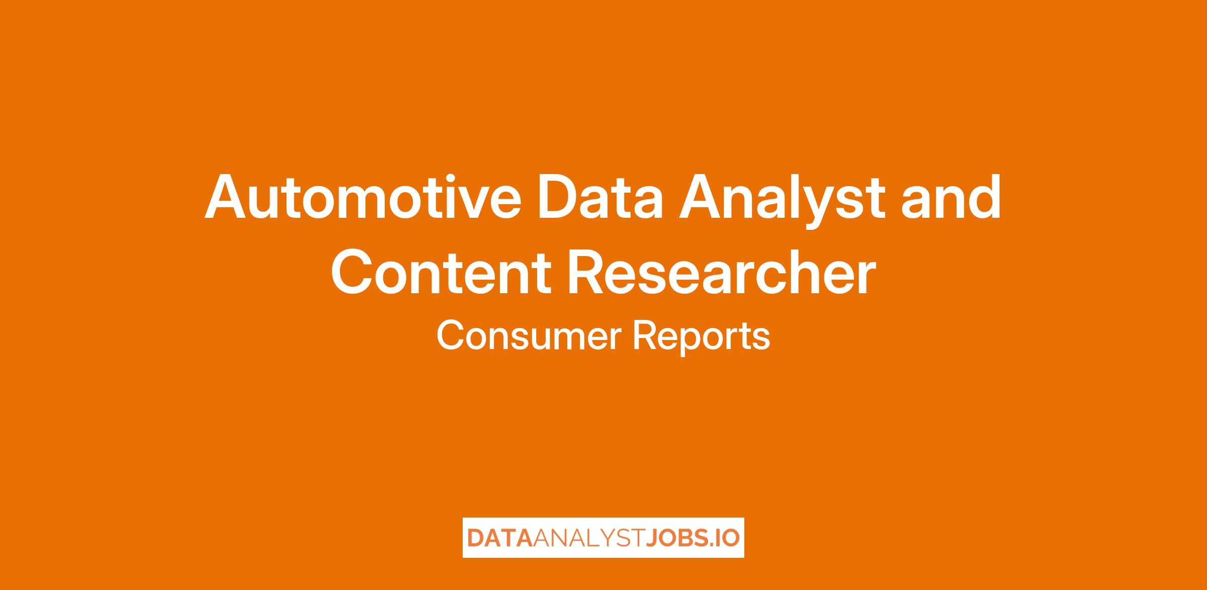 The Automotive Data Analyst and Content Researcher will report to the Associate Director, Automotive Data Integration. In this position, you will oversee the collection, validation, and internal processes for the various auto vendor and CR survey and testing data. Working closely with other auto team members, you will apply your data management expertise to ensure that our auto data collection is consistent and our analysis is accurate.