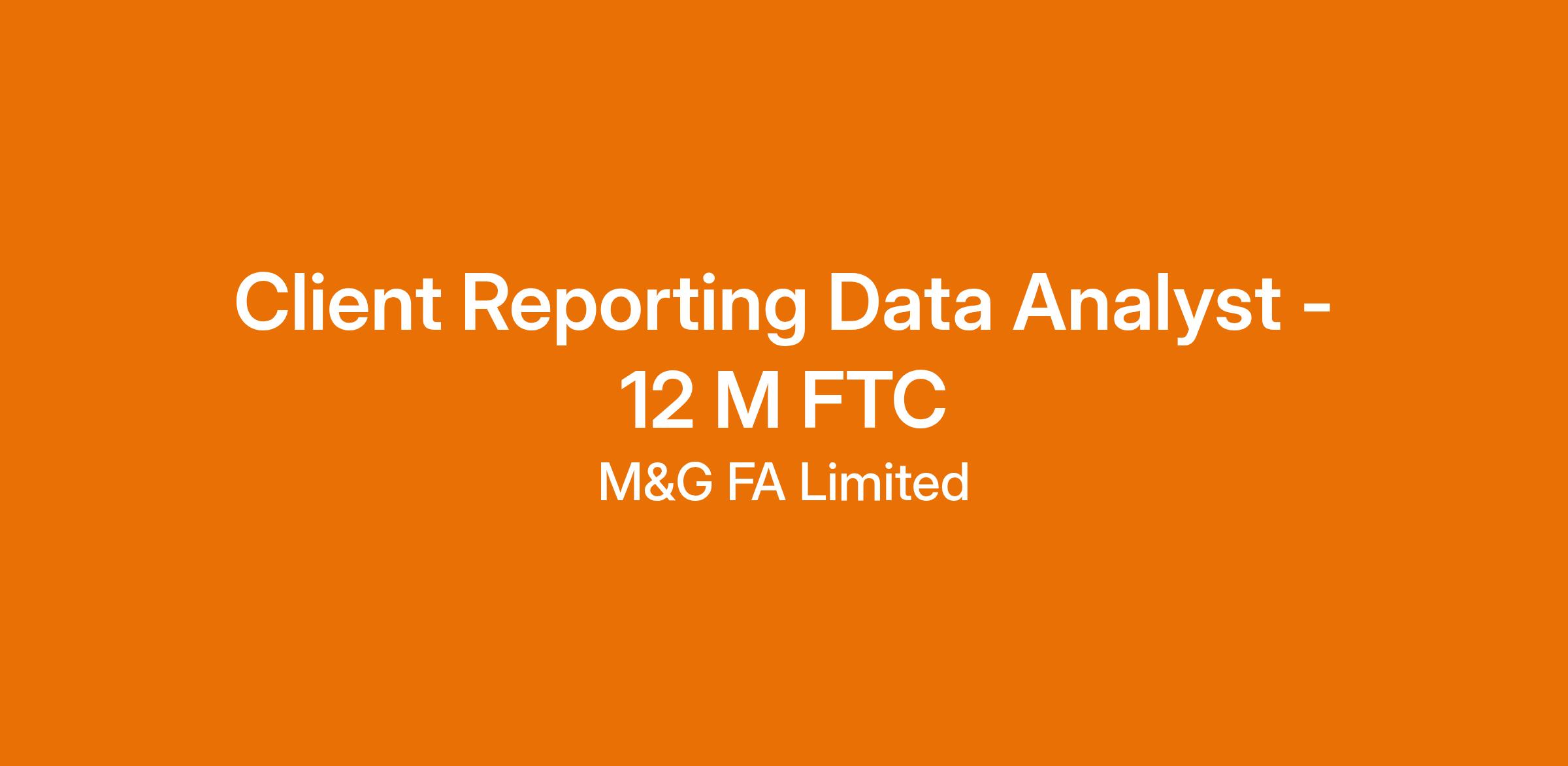 Client Reporting Analyst (12 month FTC Maternity cover) - The Role: