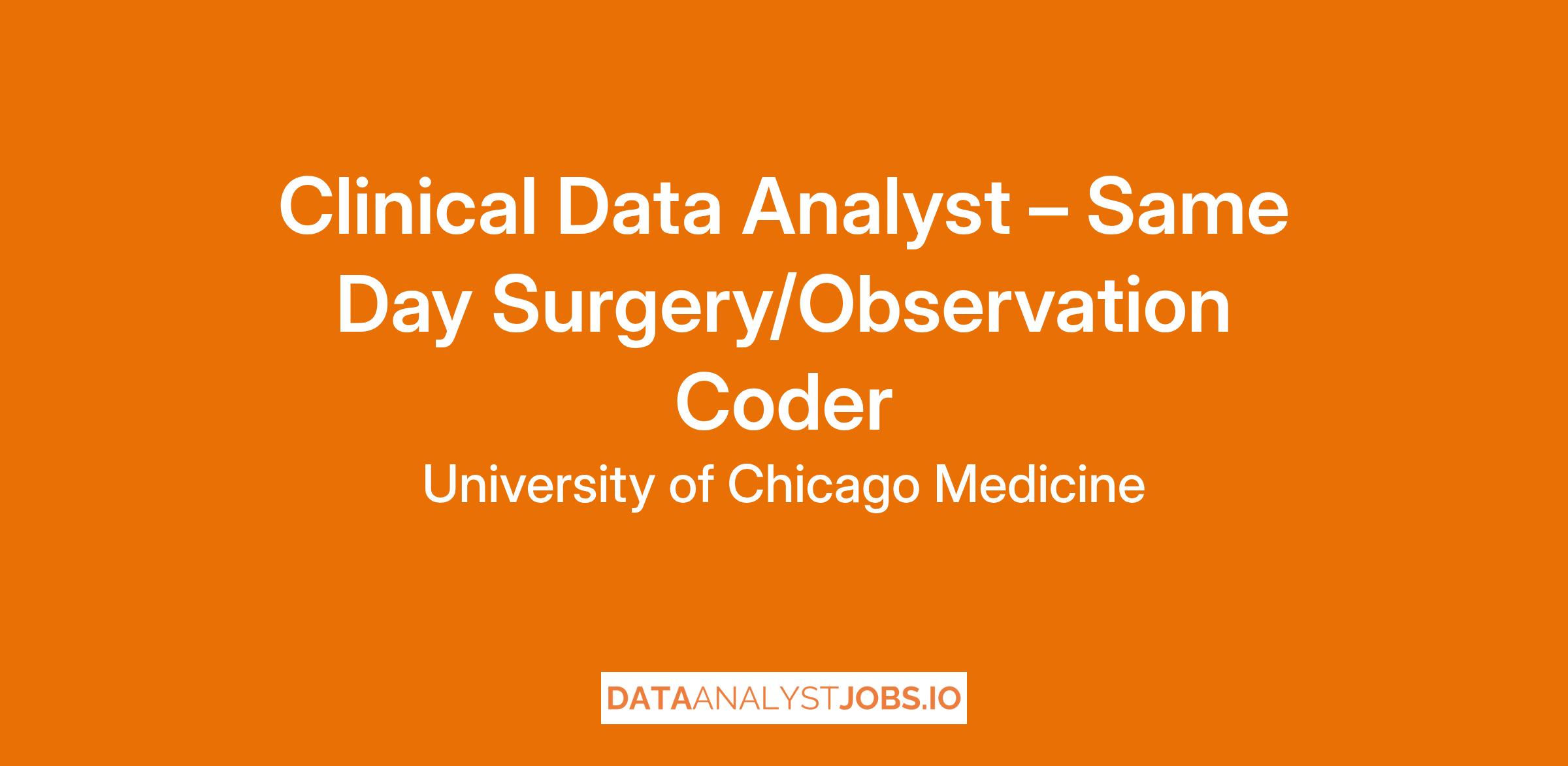 Be a part of a world-class academic health-care system at UChicago Medicine as a Clinical Data Analyst – Same Day Surgery/Observation Coder. This is a remote, work from home opportunity and you may be based outside of the greater Chicagoland area.