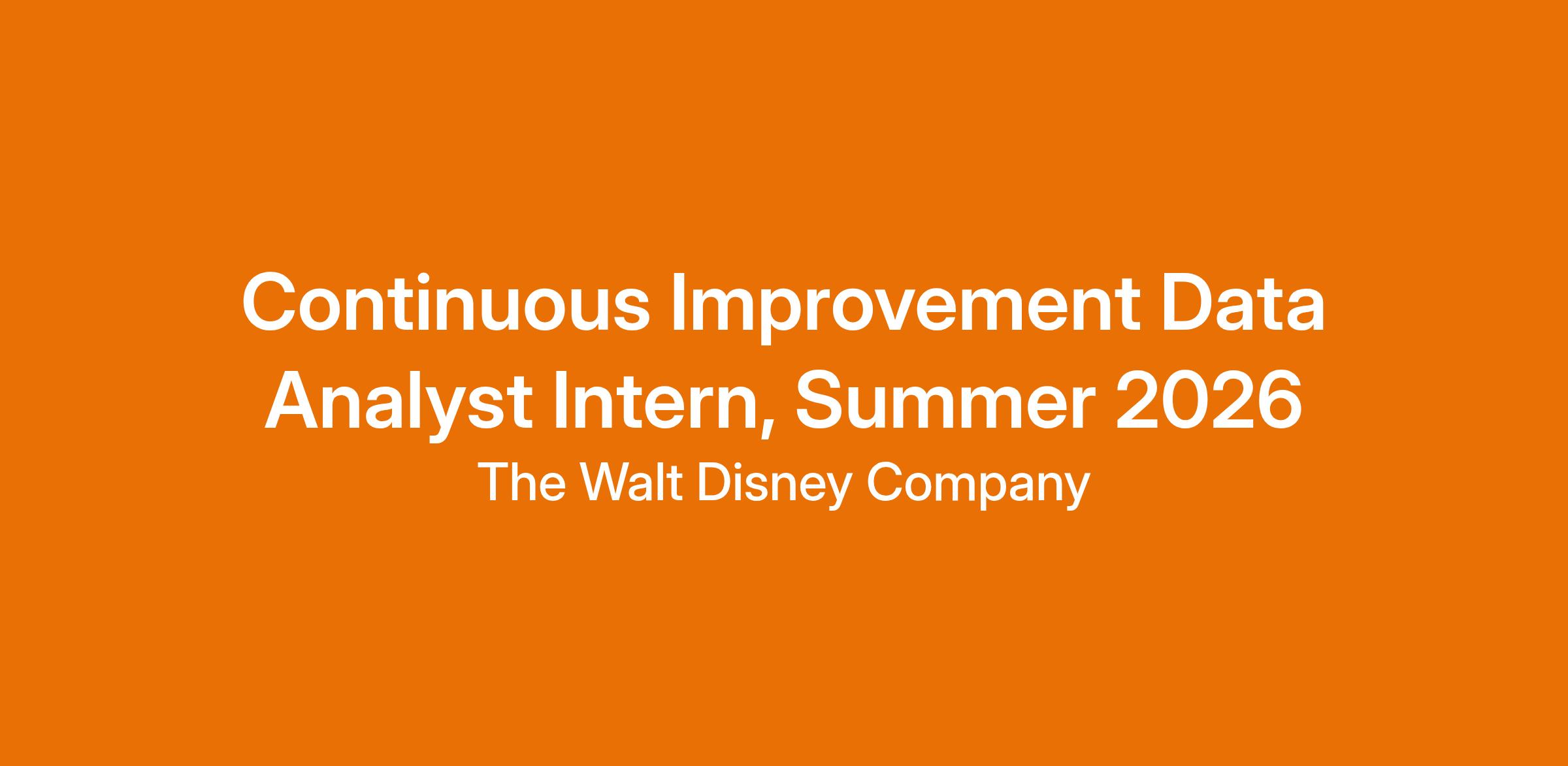 Continuous Improvement Data Analyst Intern, Summer 2026Req ID: