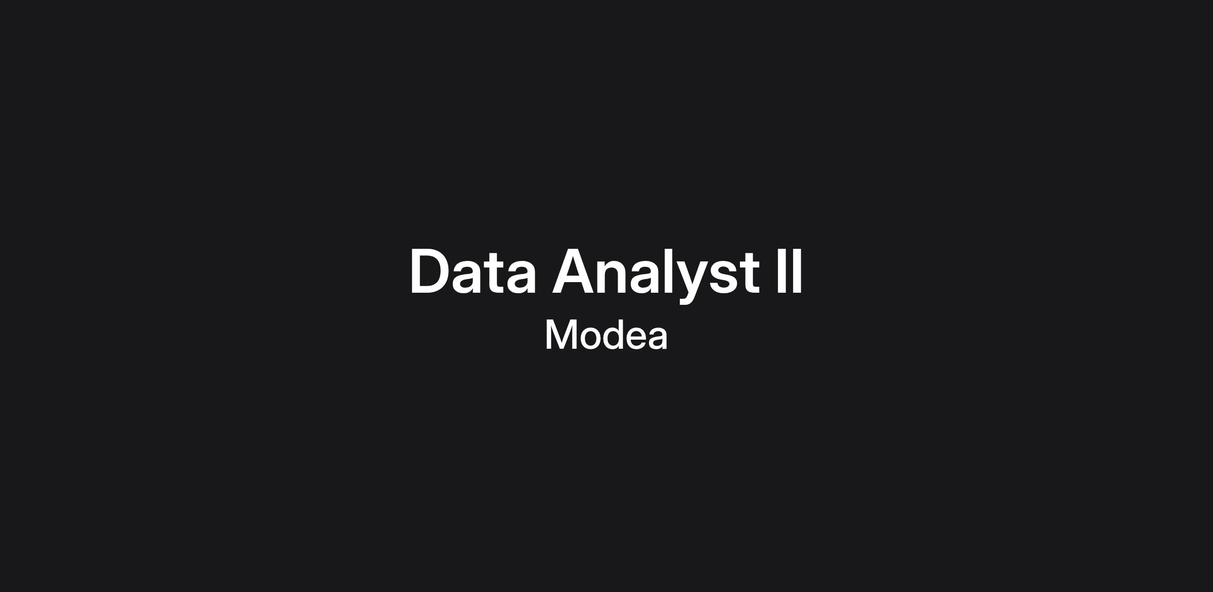 Here's a list of duties and responsibilities you'd take on as a Modea Data Analyst II: