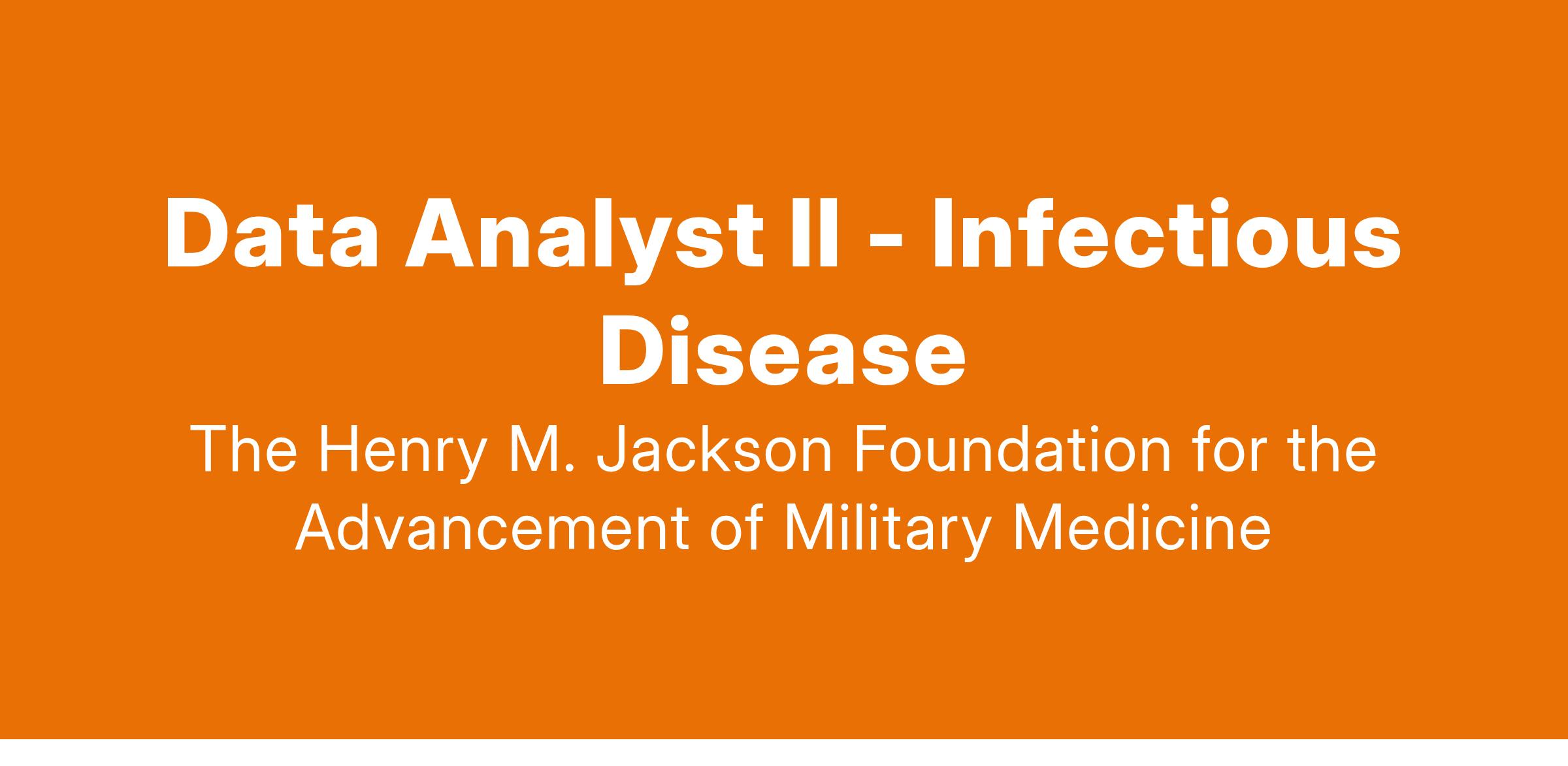 HJF is seeking a Data Analyst II to provide analytic support to epidemiologists, biostatisticians and scientists and ensure data quality, data integrity, and model development/testing.