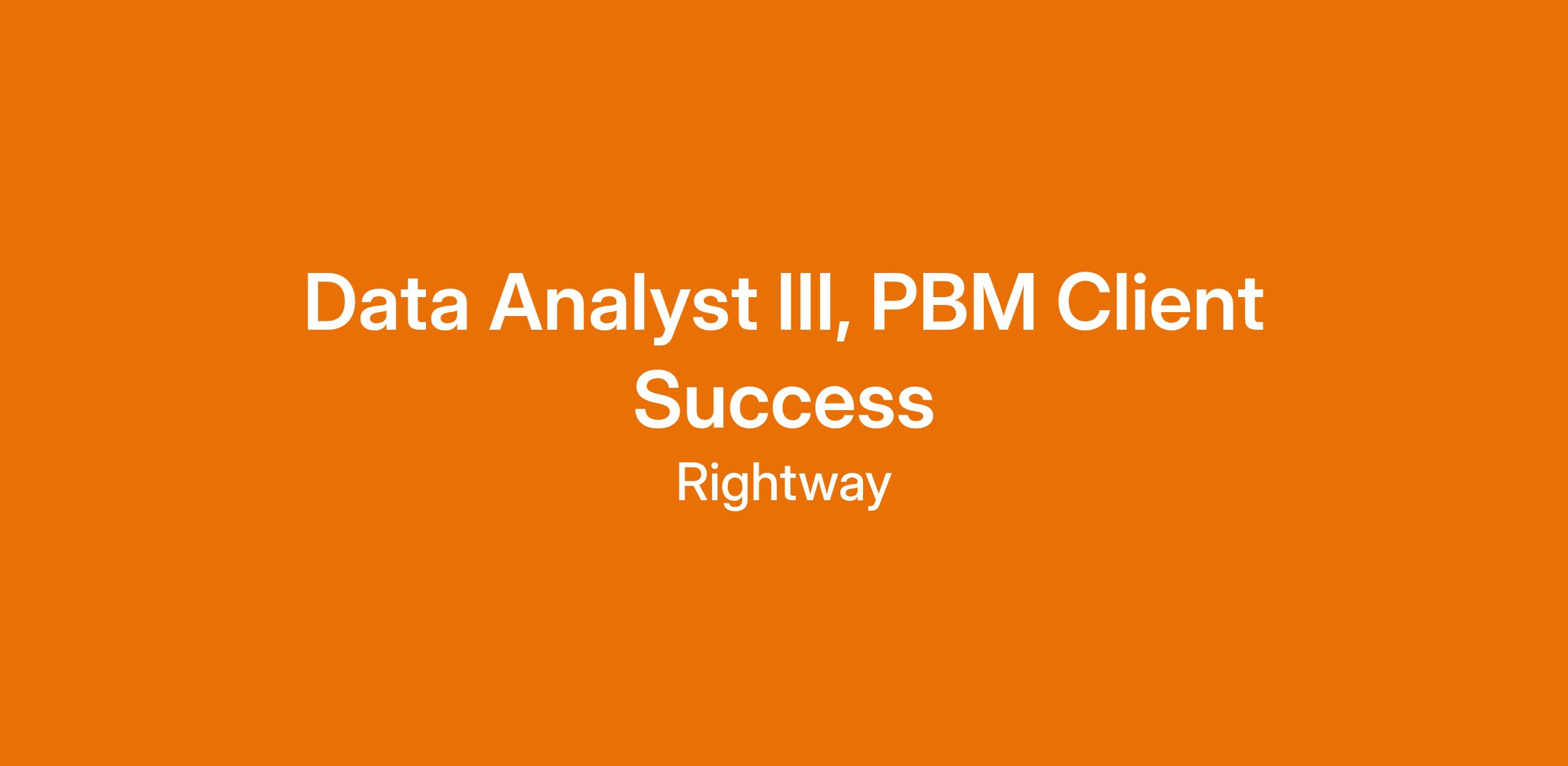 We are seeking a full-time Customer Success Analyst III to join our Data & Insights team. In this role, you’ll be responsible for creating data analyses that demonstrate our company’s impact to clients and strategic partners in the PBM space. You will support the development and execution of analytics, provide data-driven strategic insights, and create customized analytic approaches in a pharmacy benefits setting. This role supports Rightway’s clinical delivery, operations, and other internal departments by developing and delivering complex analytical needs, including quarterly performance reviews and ad hoc client inquiries. Additionally, as a Customer Success Analyst III, you will support strategic decision-making processes to optimize our PBM services.