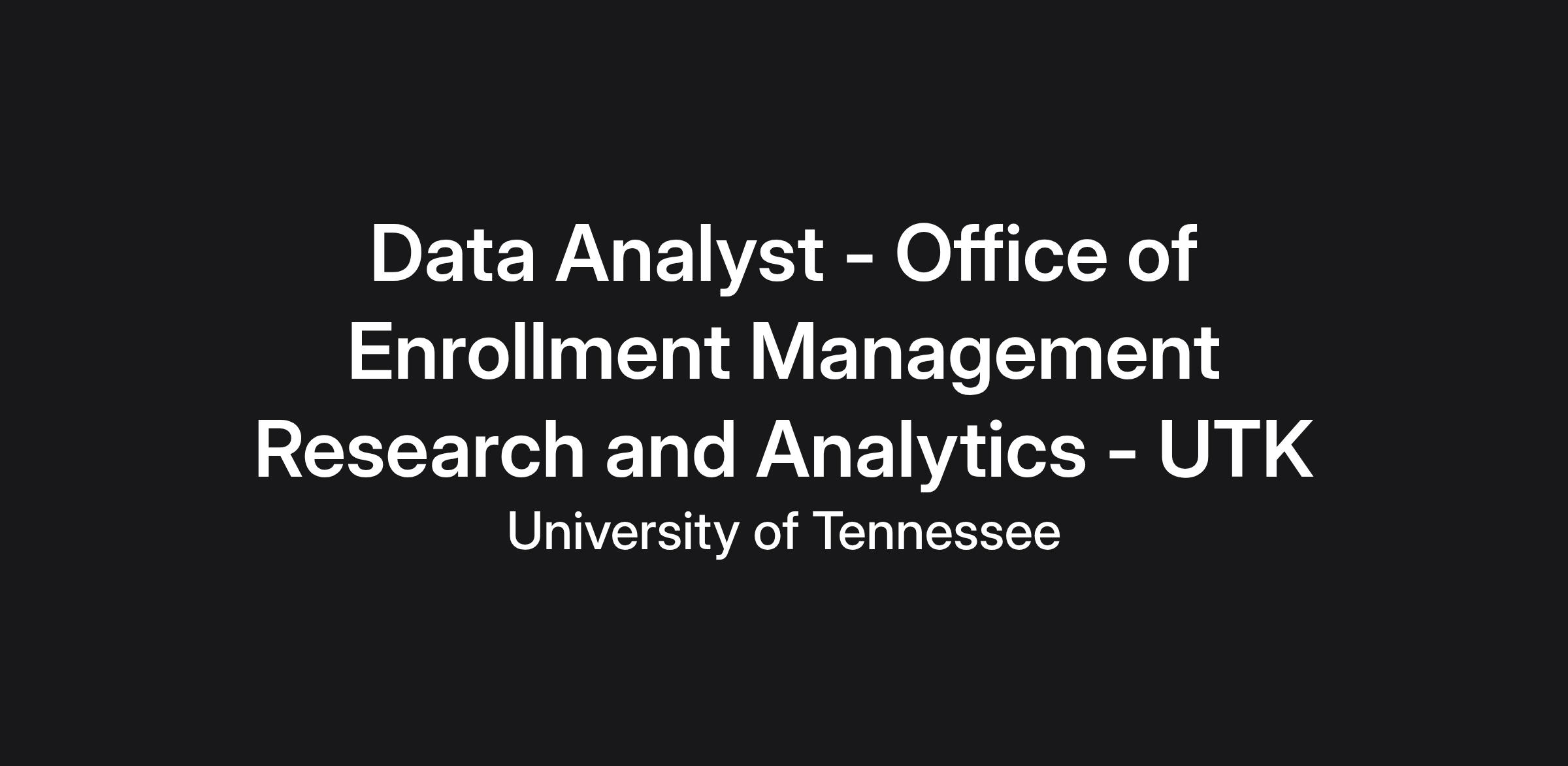 The Office of Enrollment Management Research and Analytics at the University of Tennessee, Knoxville (UTK) invites applications and nominations for our Data Analyst position. We are seeking candidates who can contribute in meaningful ways to enhance the accessibility of higher education, fostering a diverse and inclusive academic environment, and improving the recruitment and graduation of our students. The University of Tennessee, Knoxville, has been ranked by Forbes as one of America’s best large employers, as recognized on the 2025 list.