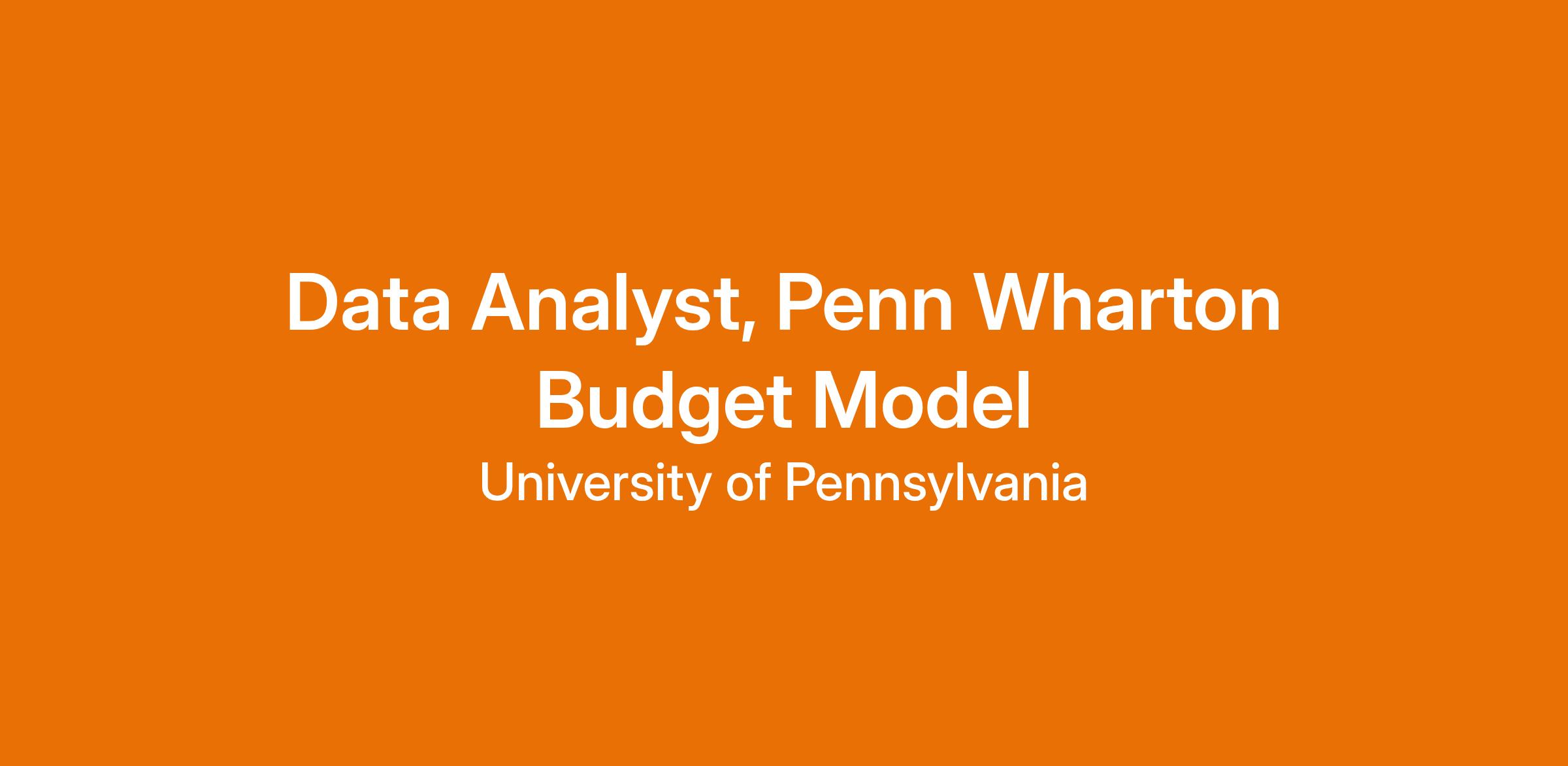 Data Analyst, Penn Wharton Budget ModelJob Profile Title