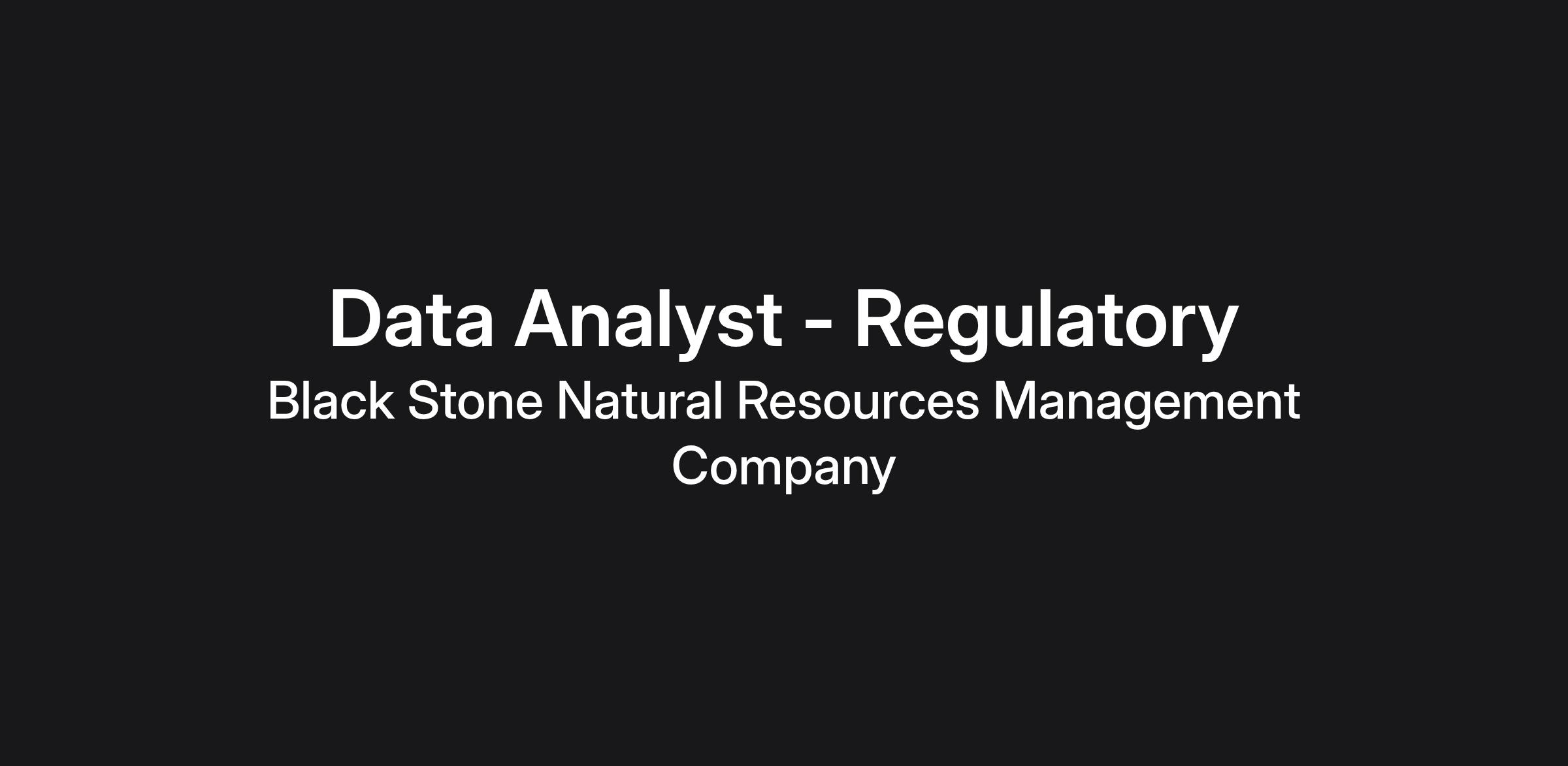 The Data Analyst, Regulatory position at Black Stone is responsible for assisting in maintaining Corporate Well Surveillance. Working under the direction of the Manager, Data Analytics, this role requires an ability to work independently and collaboratively while maintaining daily workload. This is an excellent opportunity to be exposed to all major U.S. plays and O&G producing states within the Regulatory Compliance space, with a focus on Non-Op property stance.