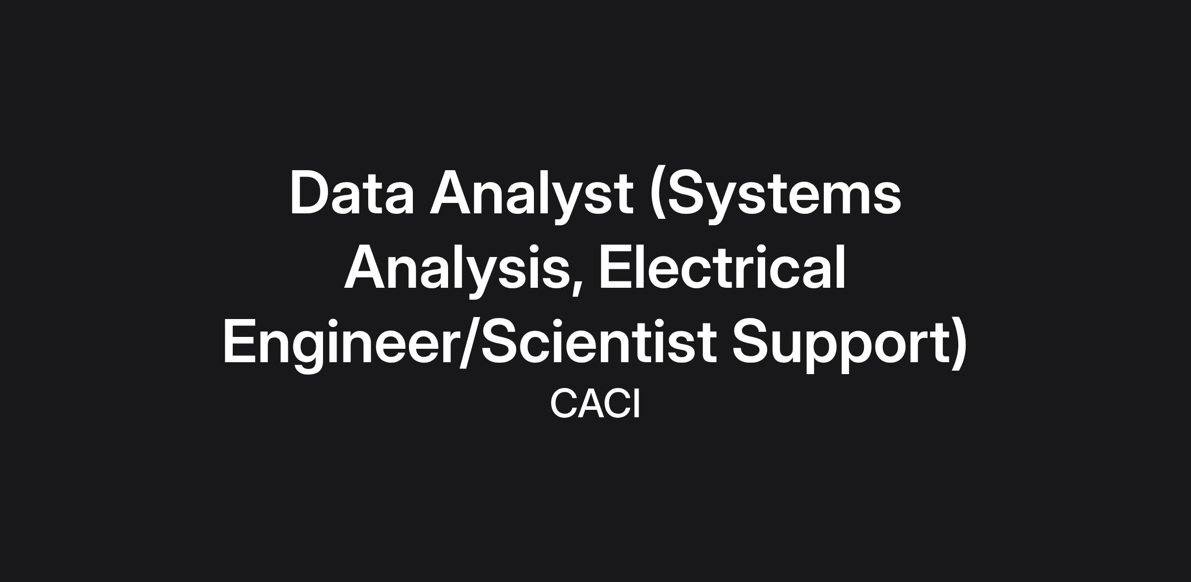 Job Title: Data Analyst (Systems Analysis, Electrical Engineer/Scientist Support)