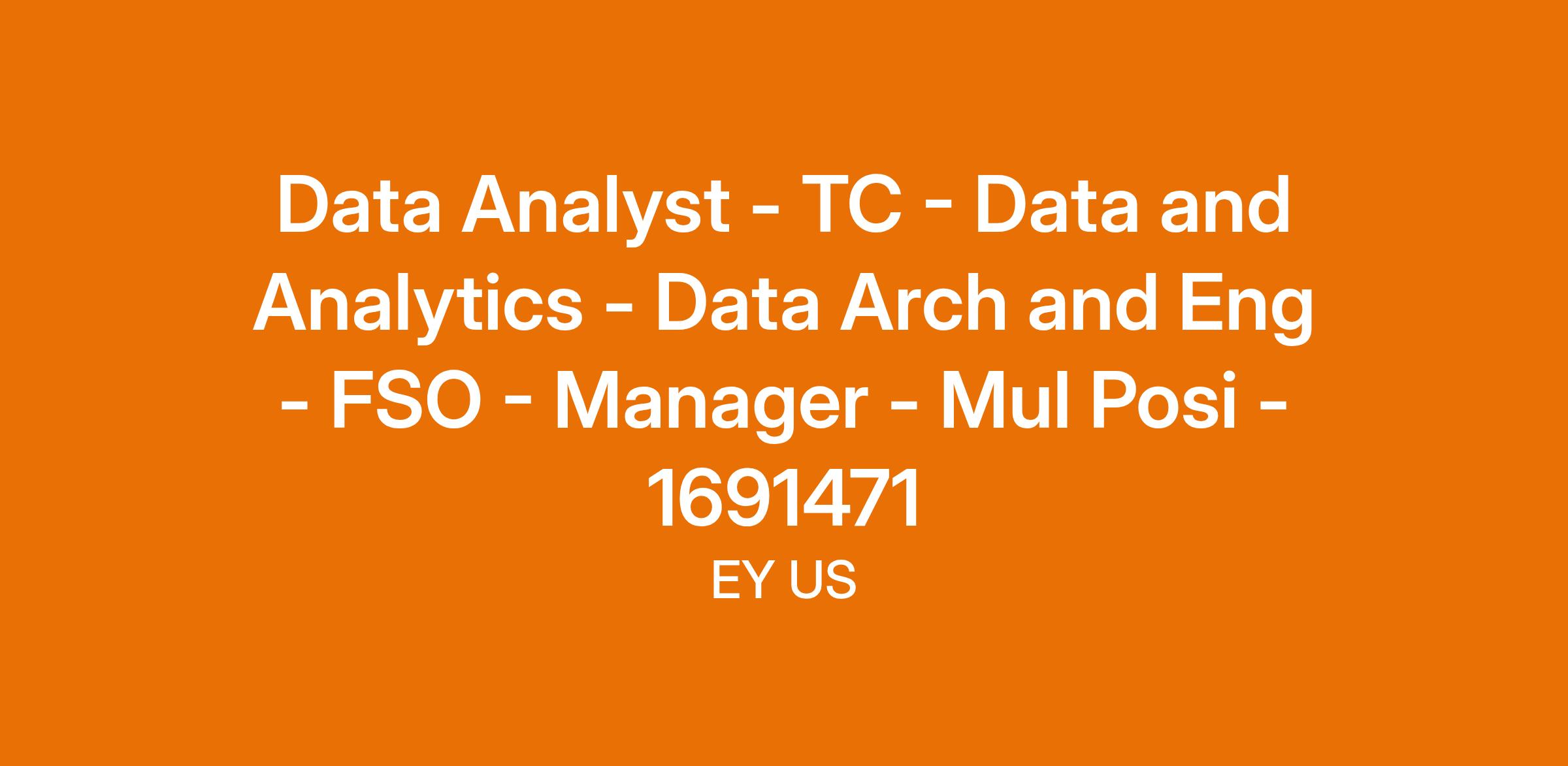 Data Analyst, Technology Consulting - Data & Analytics (Data Architecture & Engineering) – Financial Services Office (Manager) (Multiple Positions) (1691471), Ernst & Young U.S. LLP, San Jose, CA.