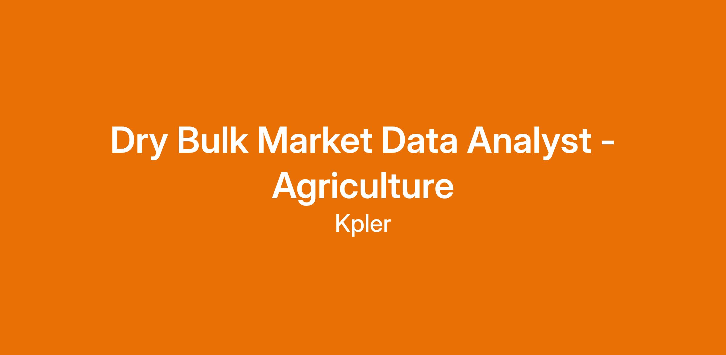 Kpler provides the most comprehensive tracking of commodity flows in dry bulk, and we are rapidly expanding our coverage. The Market Data Analyst owns data quality and operations for assigned geographical regions and product groups. You'll play a vital role in ensuring clients receive accurate, reliable data to navigate grains and oilseeds markets, while supporting the expansion of our Fertilizers coverage.