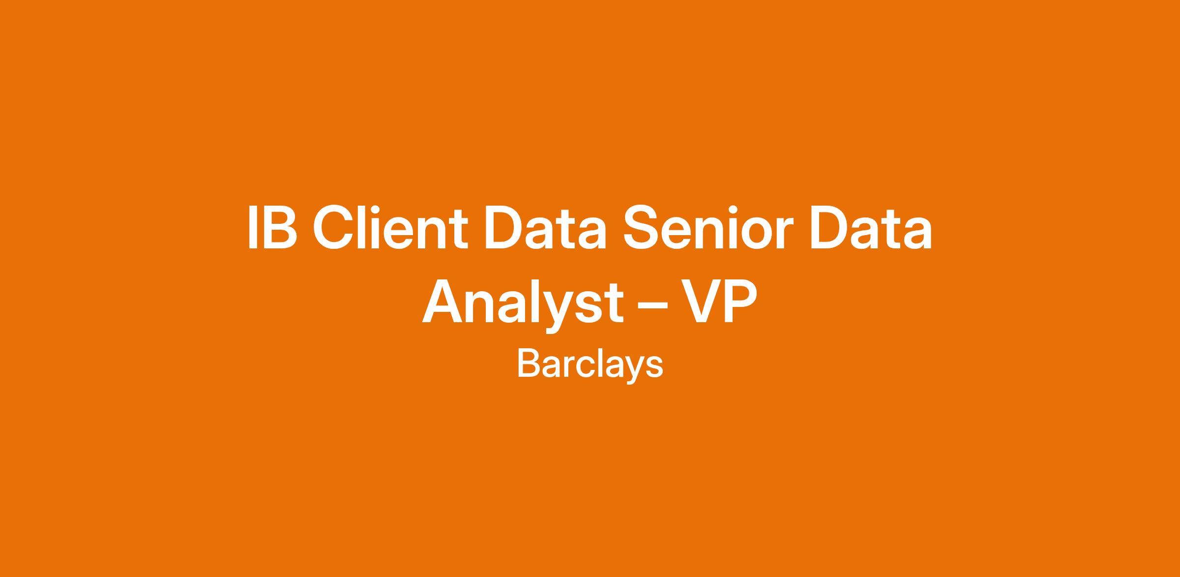 Step into the role of Senior Data Analyst at Barclays within the Investment Bank Client Data