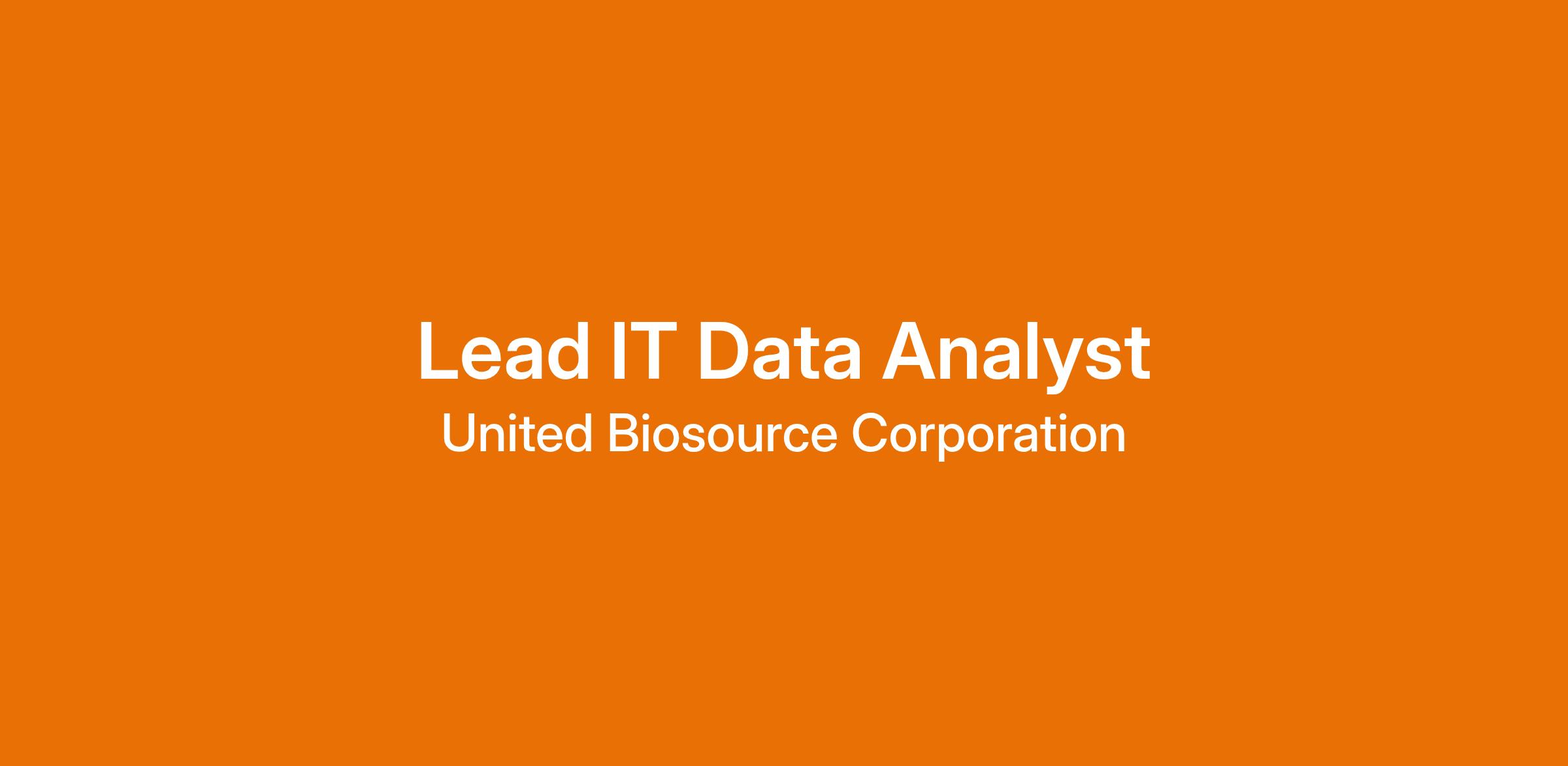 Job Title: IAN01I - Lead Data Analyst – IT