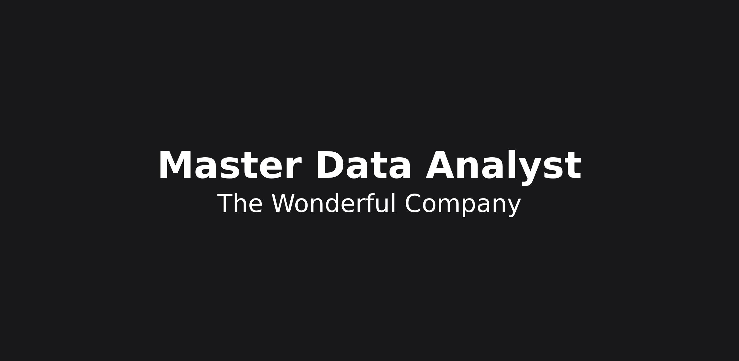 The Master Data Analyst is a valued team member who contributes to the day-to-day operations of the Wonderful Enterprise master data management team. This role will work under the supervision of the Master Data Manager and alongside a group of Master Data Analysts dedicated to the creation and maintenance of master data objects across The Wonderful Company businesses while strictly adhering to Standard Operating Procedures and enforcing data quality.