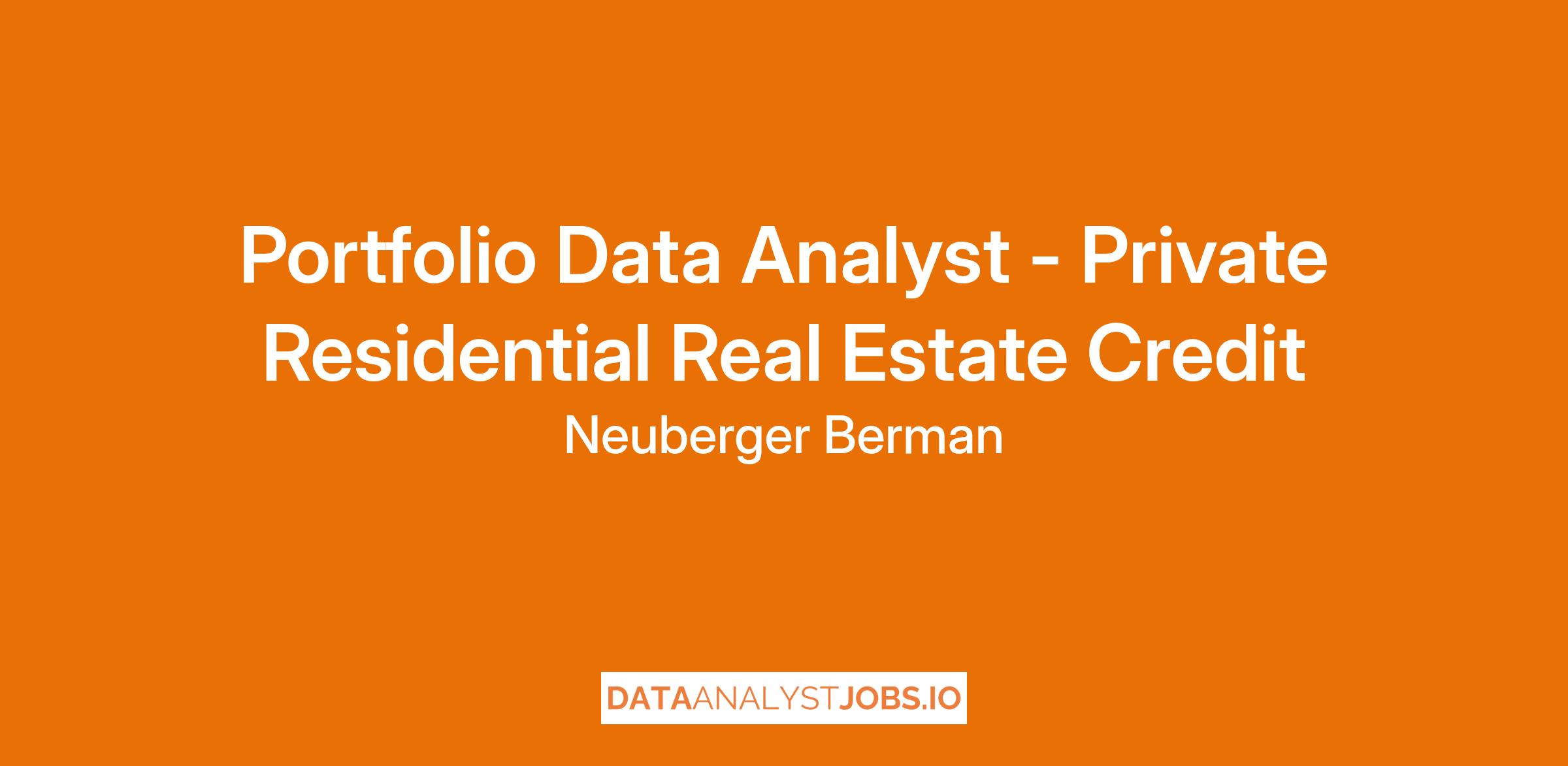 The Private Residential Real Estate Credit Strategies group is seeking a Portfolio Data Analyst to support its long-standing and growing $18+ billion-dollar private residential real estate debt business at Neuberger Berman.