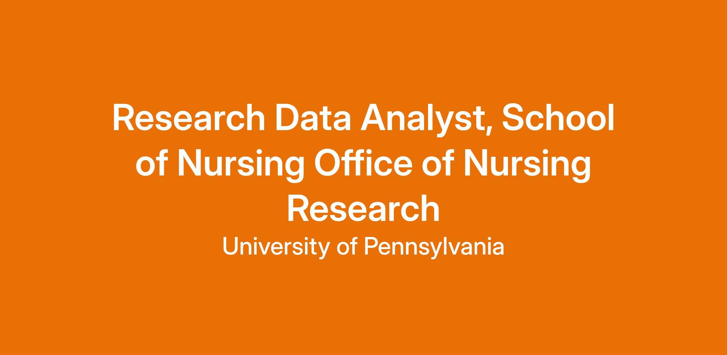 Research Data Analyst, School of Nursing Office of Nursing ResearchJob Profile Title