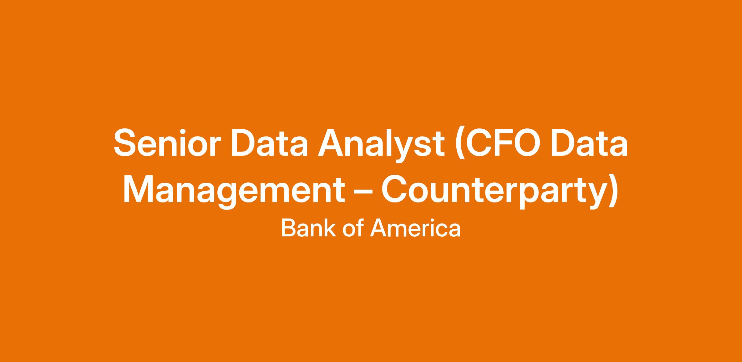 CFO Data Management (CFO DM) supports other CFO Function’s needs and use cases (e.g., management and regulatory reporting). This role will be responsible for Counterparty Data within a larger data environment. Counterparty refers to the clients and other parties associated with Bank of America’s transactions. Counterparty classification is a key element in many reports.
