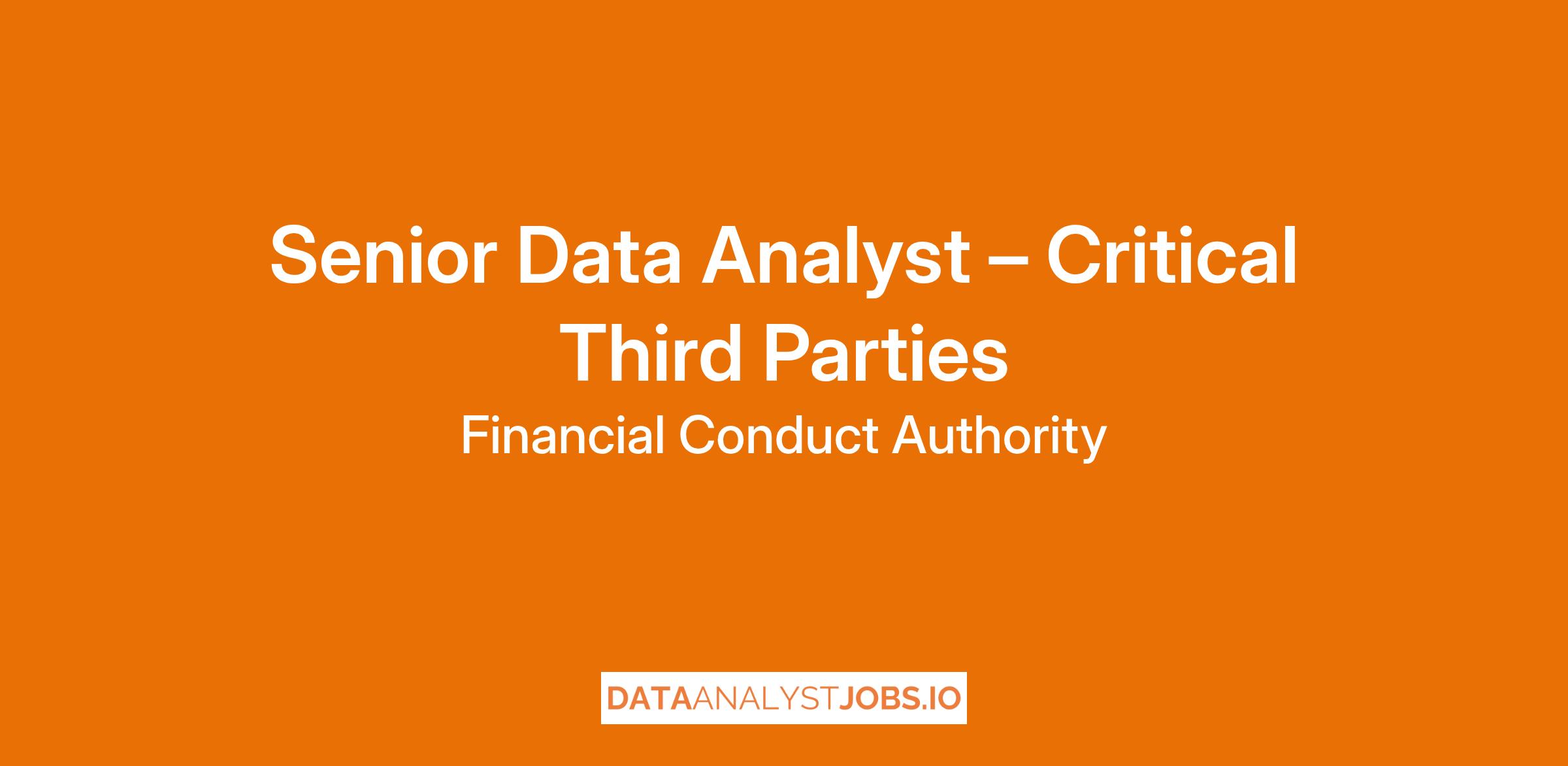Job title: Senior Data Analyst – Critical Third Parties