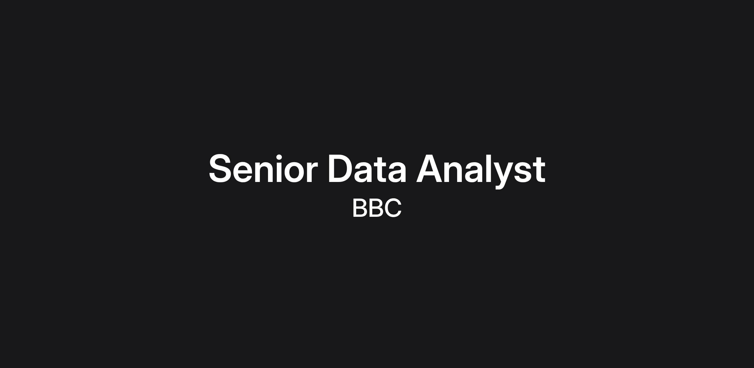 Within Content Analytics, you will have the opportunity to work at the heart of our strategy, helping to build the bridge between our audiences and the content we create to help build a BBC fit for the future. The team of 10 enthusiastic, skilled analysts spans all BBC products, allowing for varied development opportunities as you build your career with us.