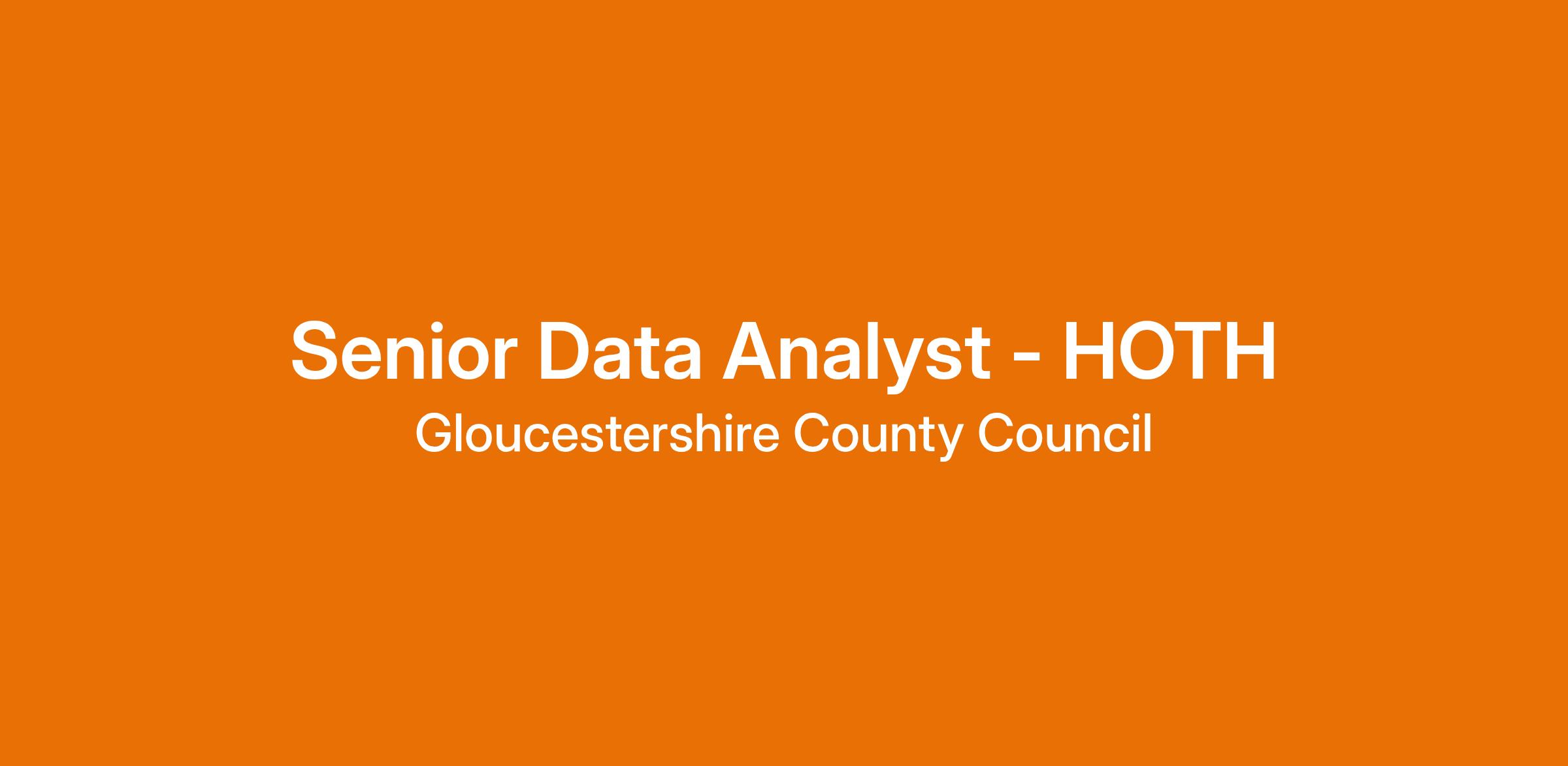 The role of Senior Data Analyst will sit within our HOTH Hub, based at Waterwells, Gloucester.