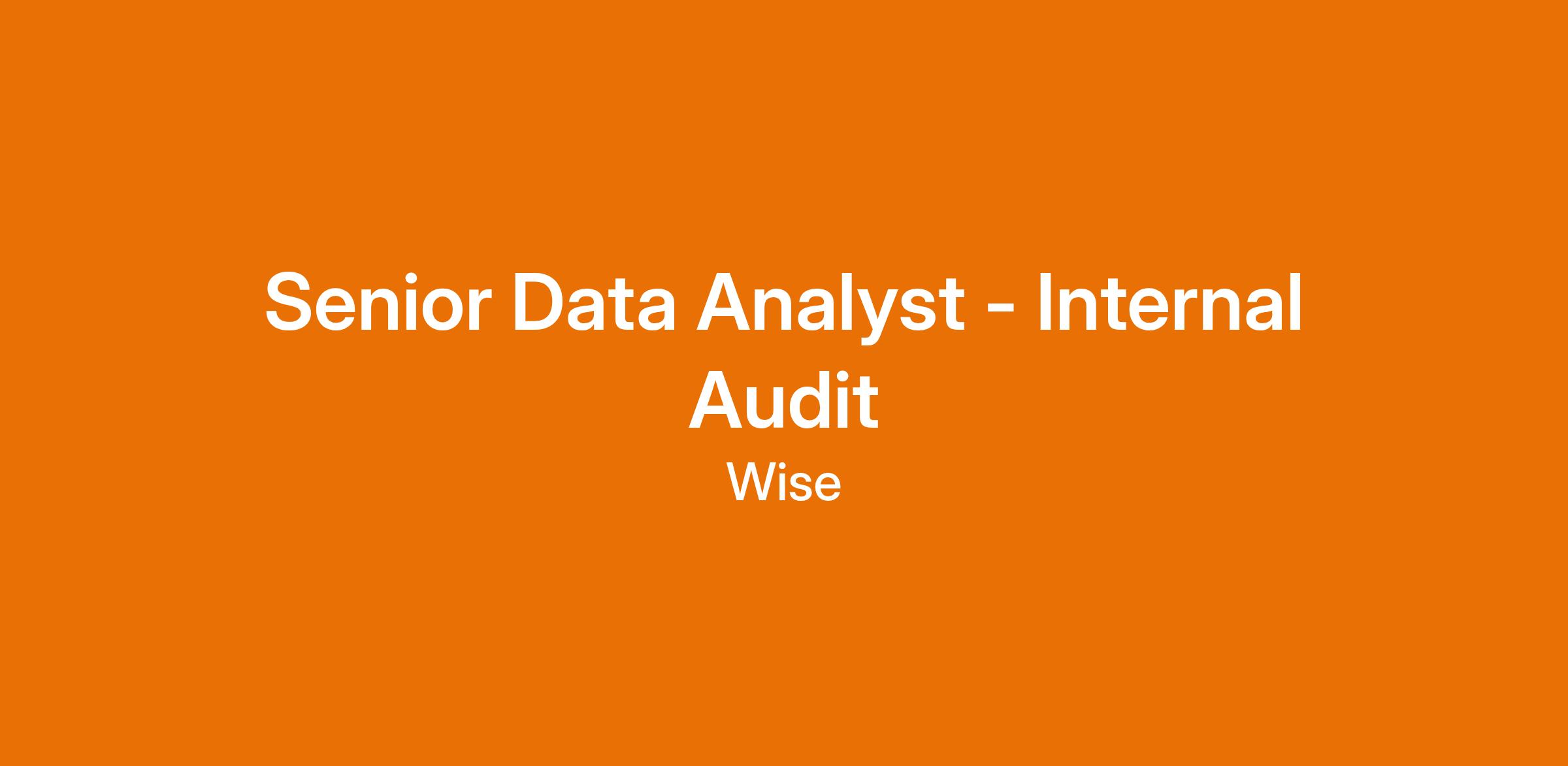 We are looking for a Senior Data Analyst to join the Internal Audit branch of the Compliance & Internal Audit Analytics team at Wise.