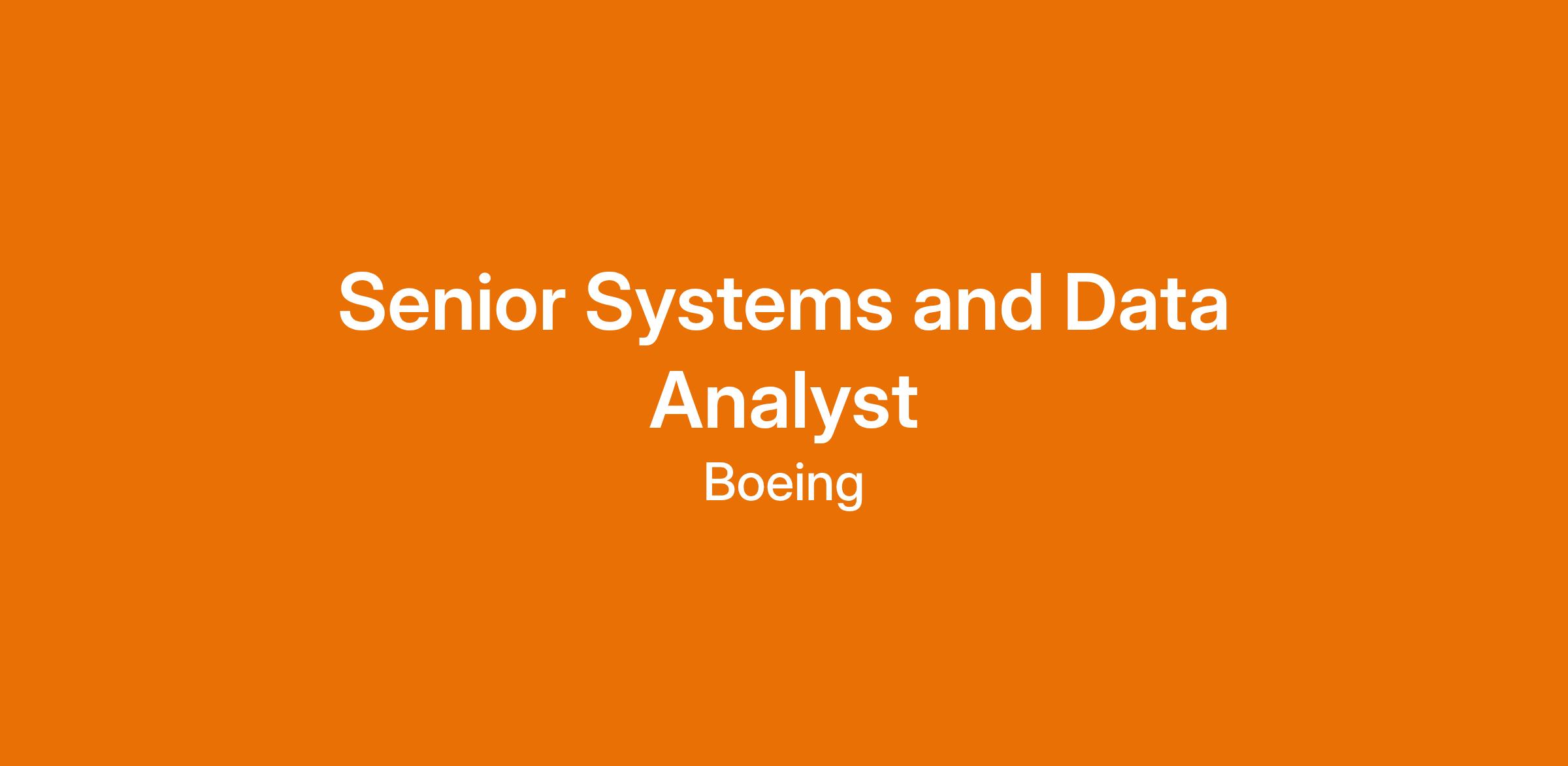 The Boeing Company is looking for a highly experienced and detail-oriented Senior Systems and Data Analyst to join the team in Seattle, WA or Hazelwood, MO.