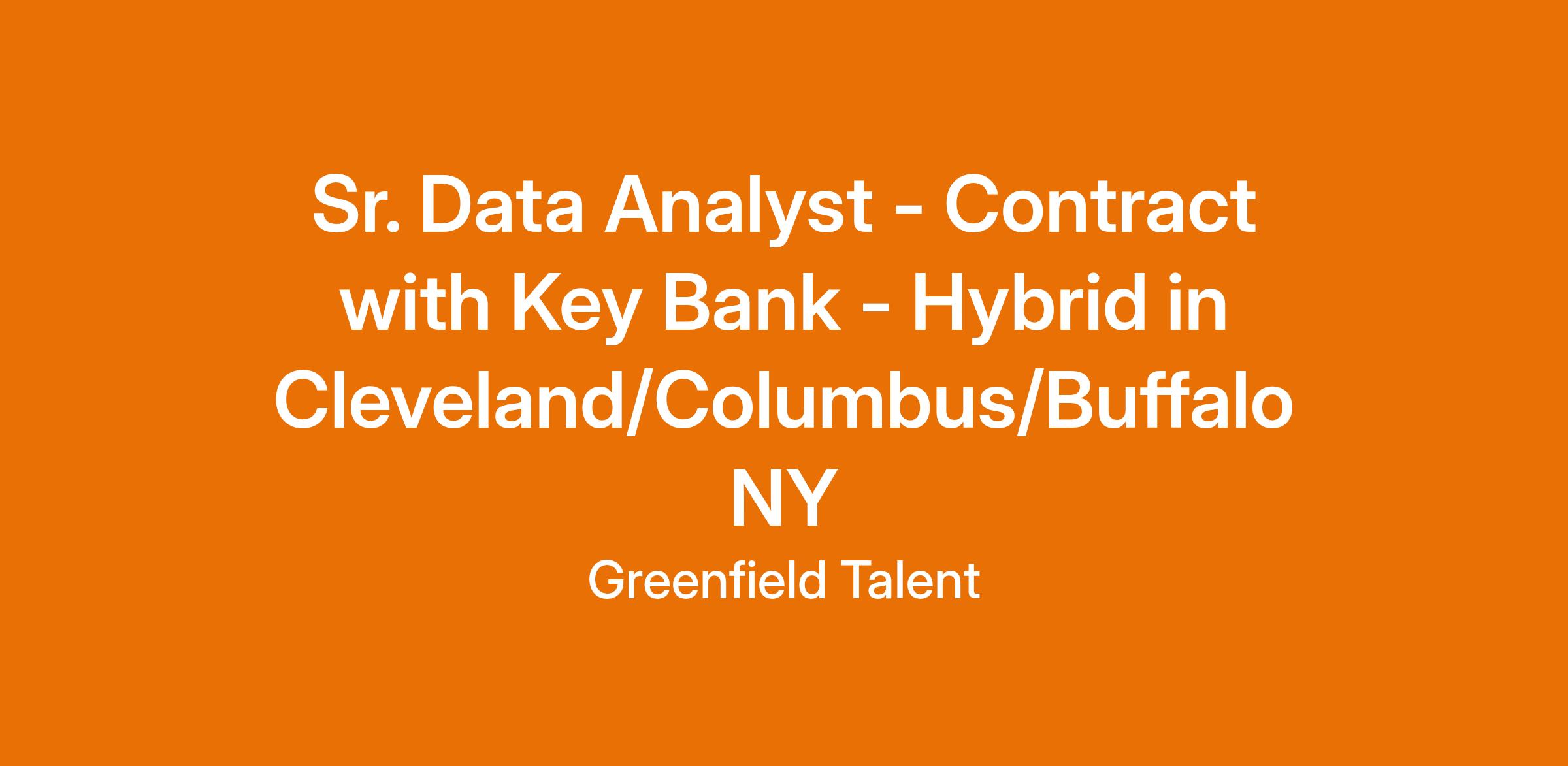 Sr. Data Analyst - Contract with Key Bank - Hybrid in Cleveland/Columbus/Buffalo NY
