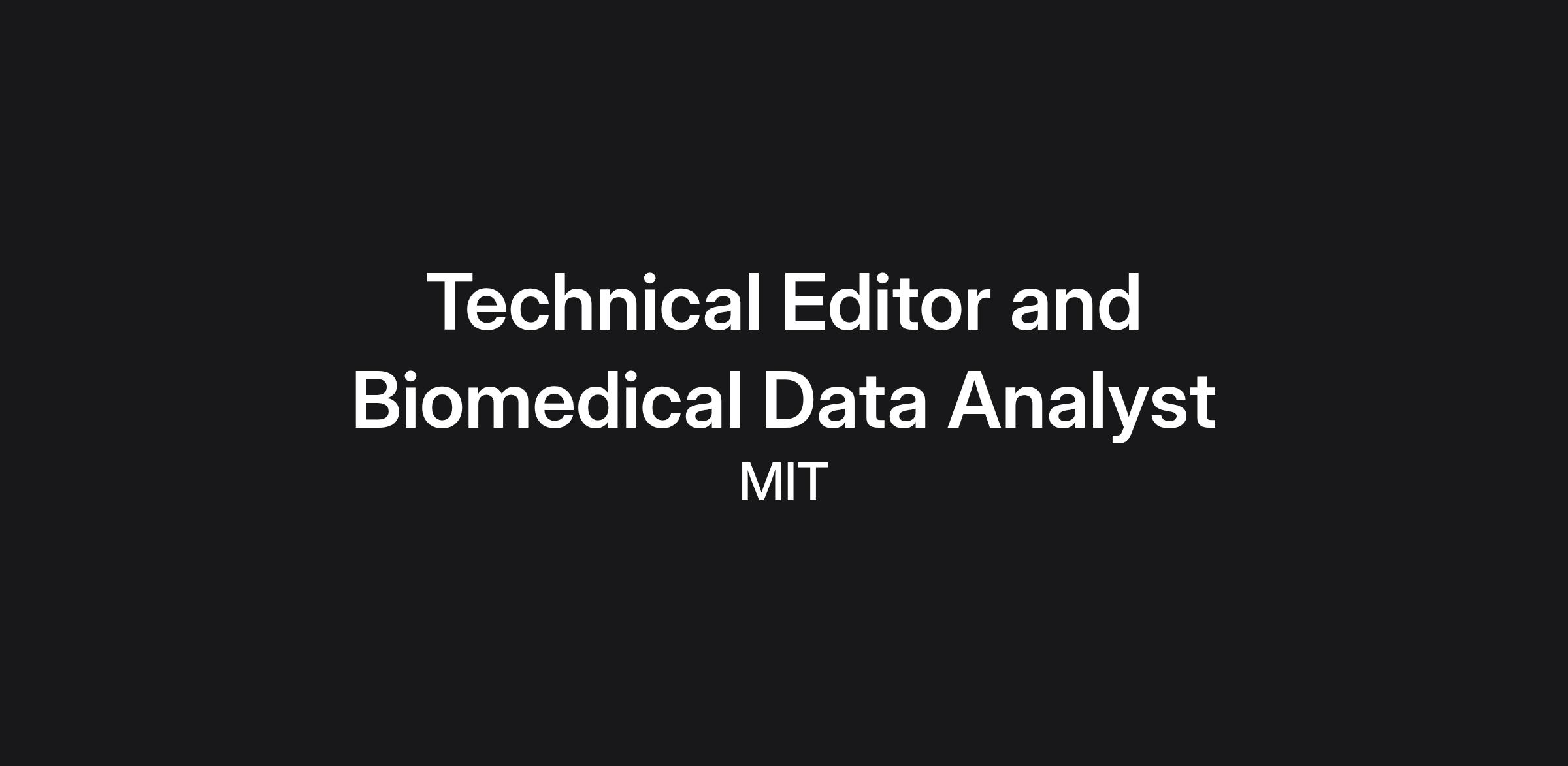 TECHNICAL EDITOR AND BIOMEDICAL DATA ANALYST, The Lab for Computational Physiology (LCP) - Medical Engineering and Science (IMES), to join the PhysioNet team. PhysioNet is an internationally recognized platform offering free access to a vast range of biomedical datasets and associated tools for researchers worldwide. This role primarily involves reviewing, curating, and managing datasets submitted to PhysioNet, ensuring contributions meet rigorous standards for scientific merit, reusability, and impact. Will provide feedback to data contributors and help guide their datasets to publication readiness and manage resources and metadata to maintain quality and organization of PhysioNet resources to adhere to the FAIR (Findable, Accessible, Interoperable, and Reusable) principle.
