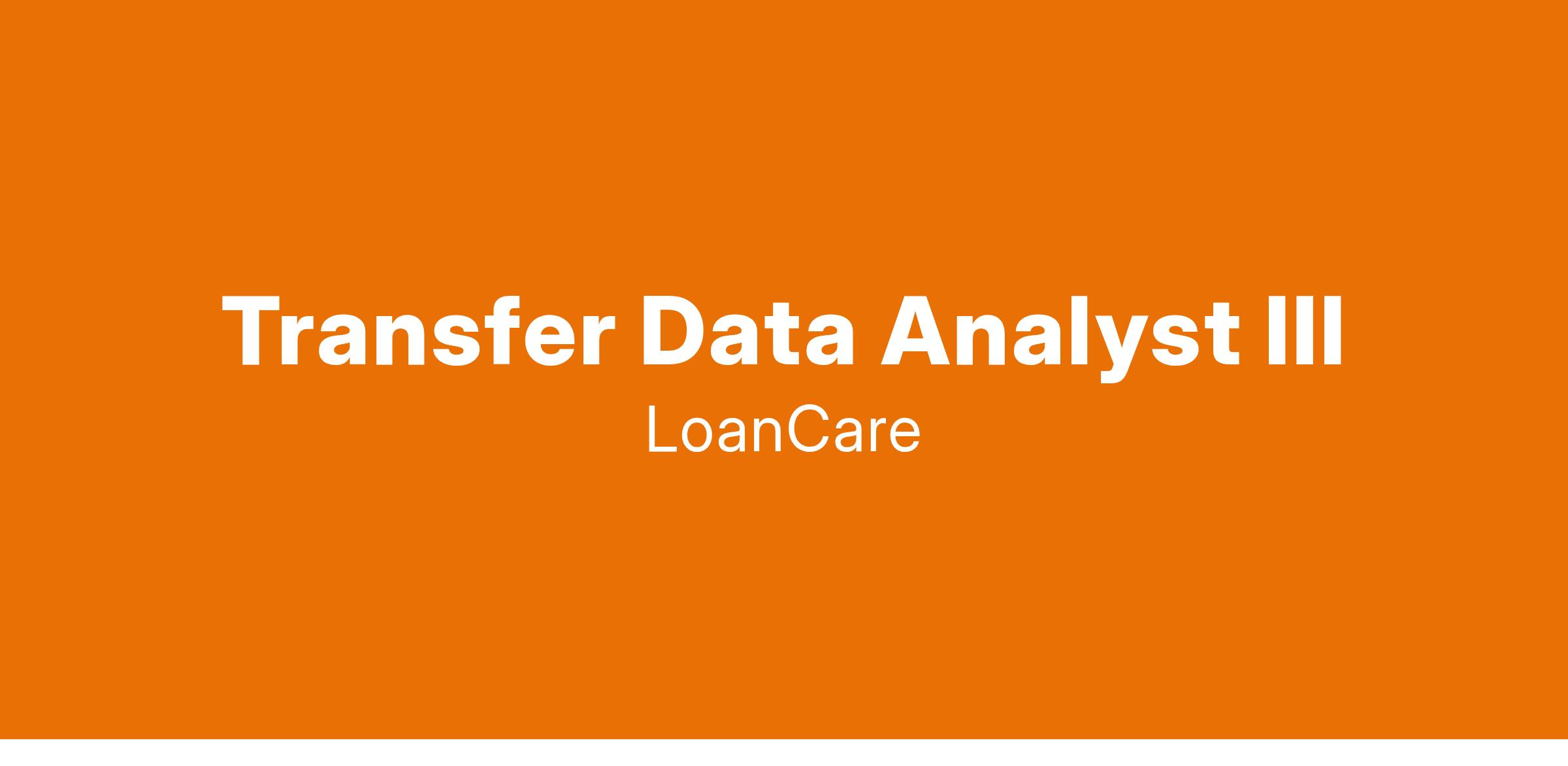 We are actively seeking to fill the role of Transfer Data Analyst III. Our ideal candidate enjoys working with clients, both internal and external, eager to learn and maximize results, is detail oriented and driven to meet tight deadlines in a fast-paced environment. Background in the mortgage or real estate industry is a plus. If this sounds like you, and you are ready for a career and not just your next job, apply today!